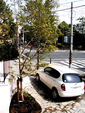 | このお庭は、どこまでが敷地でどこからが公共の歩道なのか、どの木が庭の樹木でどの木が国道の街路樹かわからないように、わざと公道と個人の領域を錯覚させるように少しいたずらな設計をしたのです。そうしたら・・・神奈川県大和市から「街並みのアクセサリー賞」を授与されました。 I designed and planned this garden with a certain concept--The False Borderline.....or Borderless between one's land and public sidewalk.Hoping that the garden seems to extend to the townscape. |